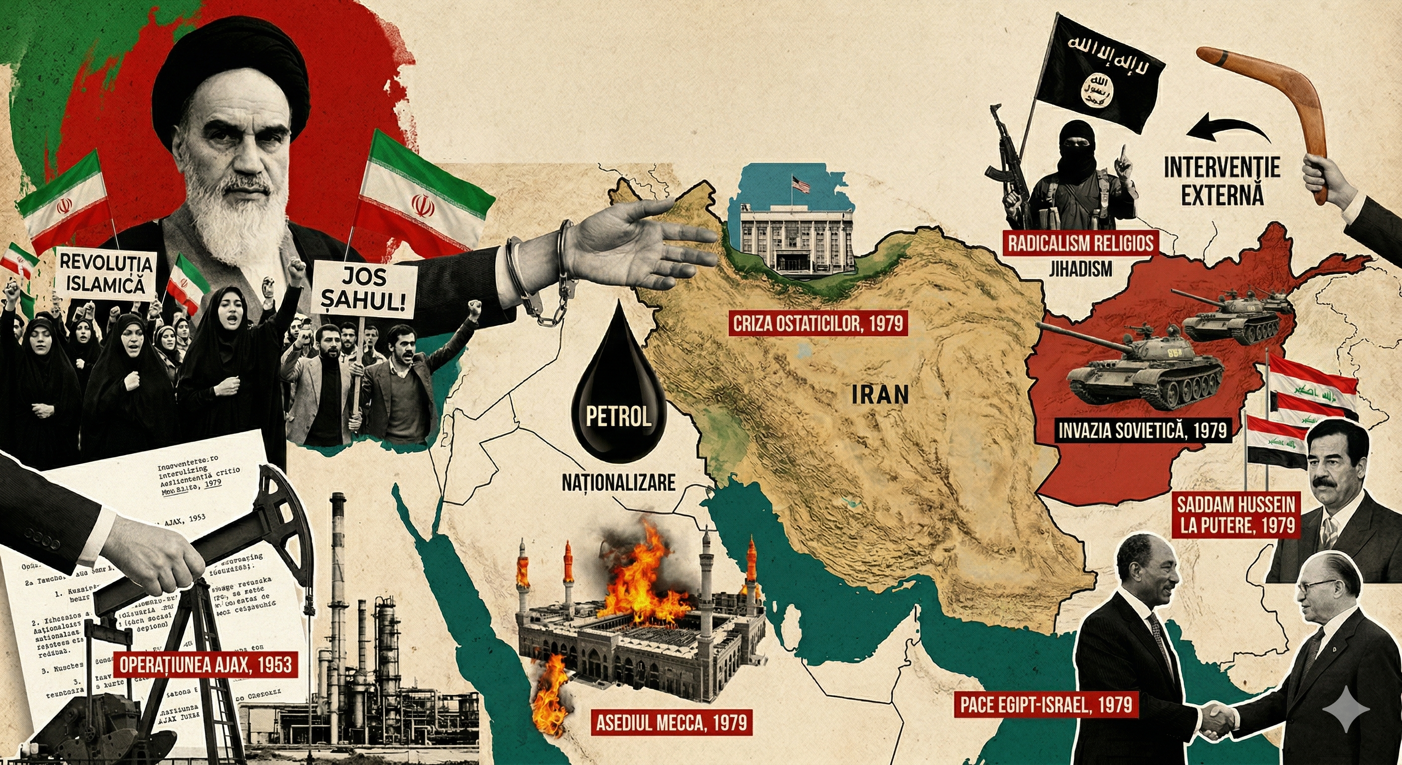 În concluzie, anul 1979 nu a reprezentat un accident istoric, ci mai degrabă erupția inevitabilă a unui vulcan alimentat timp de decenii de frustrări, umilințe și decizii geopolitice cinice dictate de la Londra sau Washington. Orbite de mirajul aurului negru și de necesitățile strategice ale momentului, marile puteri occidentale au tratat Orientul Mijlociu ca pe o simplă tablă de șah, ignorând constant voința, cultura și demnitatea popoarelor din regiune. Înlăturarea mișcărilor naționaliste legitime, cum a fost cazul lui Mossadegh, și susținerea necondiționată a unor regimuri autoritare au ucis din fașă șansa Iranului la o evoluție diferită. Astfel, radicalismul religios care a explodat în 1979 și care continuă să remodeleze lumea și astăzi este, în esență, un bumerang al propriilor intervenții occidentale. Orientul Mijlociu ne demonstrează, poate mai clar decât orice altă regiune a lumii, că nicio intervenție externă forțată nu rămâne fără ecou în timp, iar „stabilitatea” impusă împotriva voinței unei națiuni naște întotdeauna crizele devastatoare de mâine.